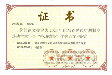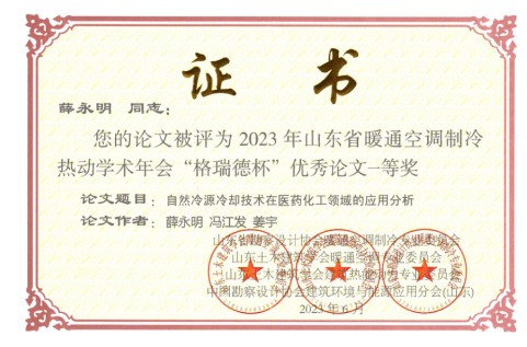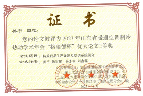 會議期間舉行了“格瑞德杯”優秀論文頒獎及優秀學術組織獎頒獎儀式。省醫工院暖通空調專業獲得佳績,《自然冷源冷卻技術在醫藥化工領域的應用分析》榮獲論文一等獎,《實驗動物房全新風潔凈空調機組節能形式探索》《特效藥品生產設施及空調系統簡介》榮獲三等獎。
