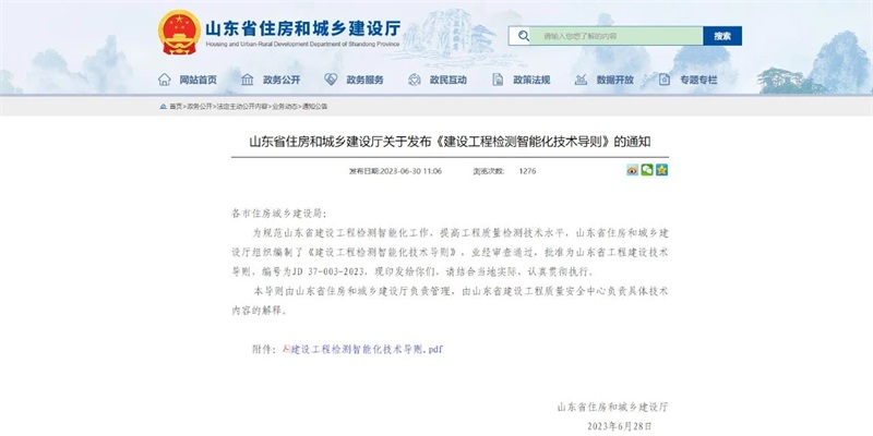 省住房和城鄉建設廳發布《建設工程檢測智能化技術導則》