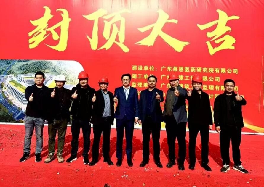 1月9日,由我司承擔設(shè)計的廣東萊恩醫(yī)藥研究院有限公司(以下簡稱“萊恩醫(yī)藥”)生物醫(yī)藥產(chǎn)業(yè)園項目舉行主體結(jié)構(gòu)封頂儀式。