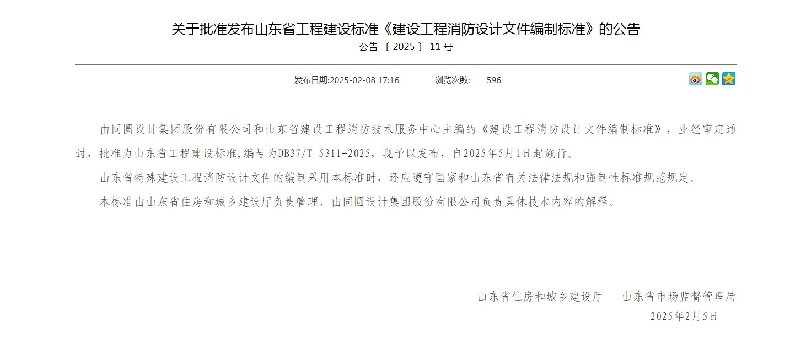 近日,由山東省醫工院參編的《建設工程消防設計文件編制標準》(DB37/T 5311-2025),獲山東省住房和城鄉建設廳、山東省市場監督管理局共同批準發布,并將于2025年5月1日開始實施。