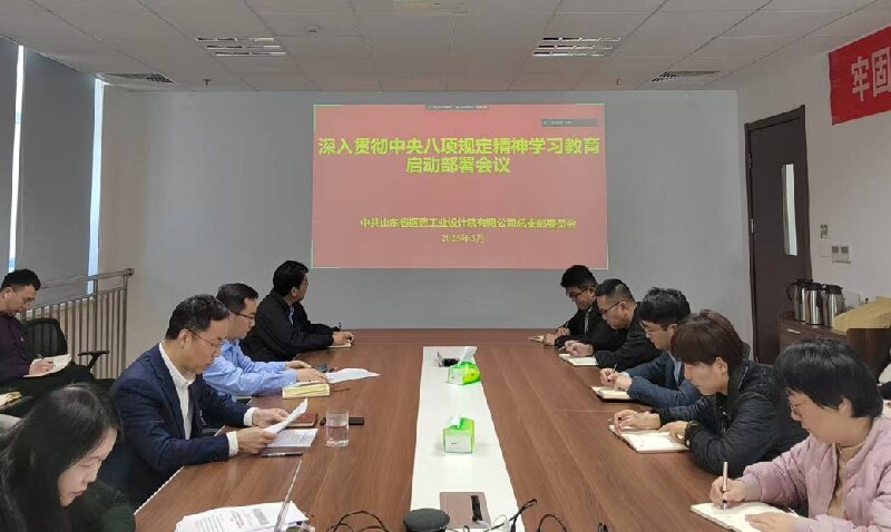 3月19日,山東省醫工院黨總支召開黨總支委員會會議暨黨的建設工作領導小組會議,研究部署深入貫徹中央八項規定精神學習教育工作。黨的建設工作領導小組成員參加會議。
