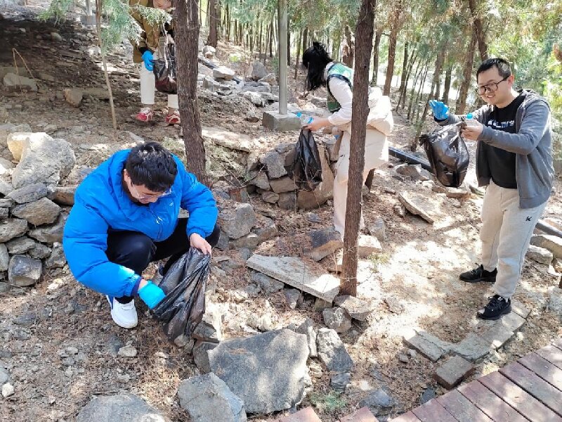 本次活動開始前,工作人員將垃圾袋和一次性手套分發(fā)到每一位黨員手中,并引導(dǎo)黨員們做好垃圾分類收集,傳播低碳環(huán)保理念。黨員志愿者們從大山坡山體公園的山腳出發(fā),沿著山路一直向上,沿路清理塑料垃圾、煙頭等雜物,并將撿拾的垃圾做好分類、合理處置。